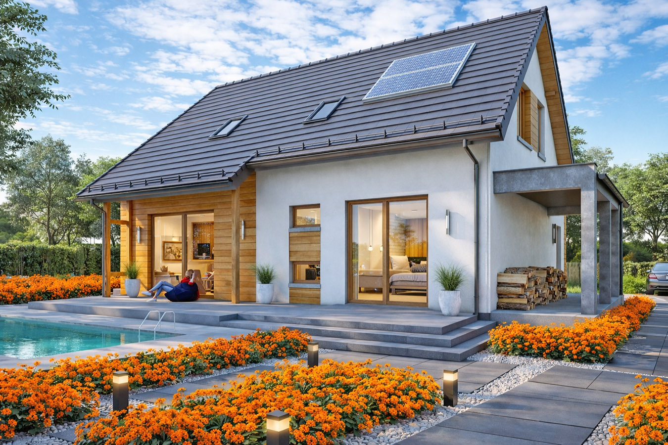 Powierzchnia dachu 158,00m2 (+wiata na drewno 9,10m2)