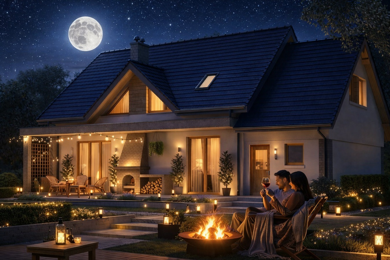 Zawiera wszystkie instalacje wewnętrzne: centralnego ogrzewania z kotłem na paliwo stałe lub na gaz ziemny, wod.- kan, c.w., gazową, elektryczną, solarną oraz odgromową.