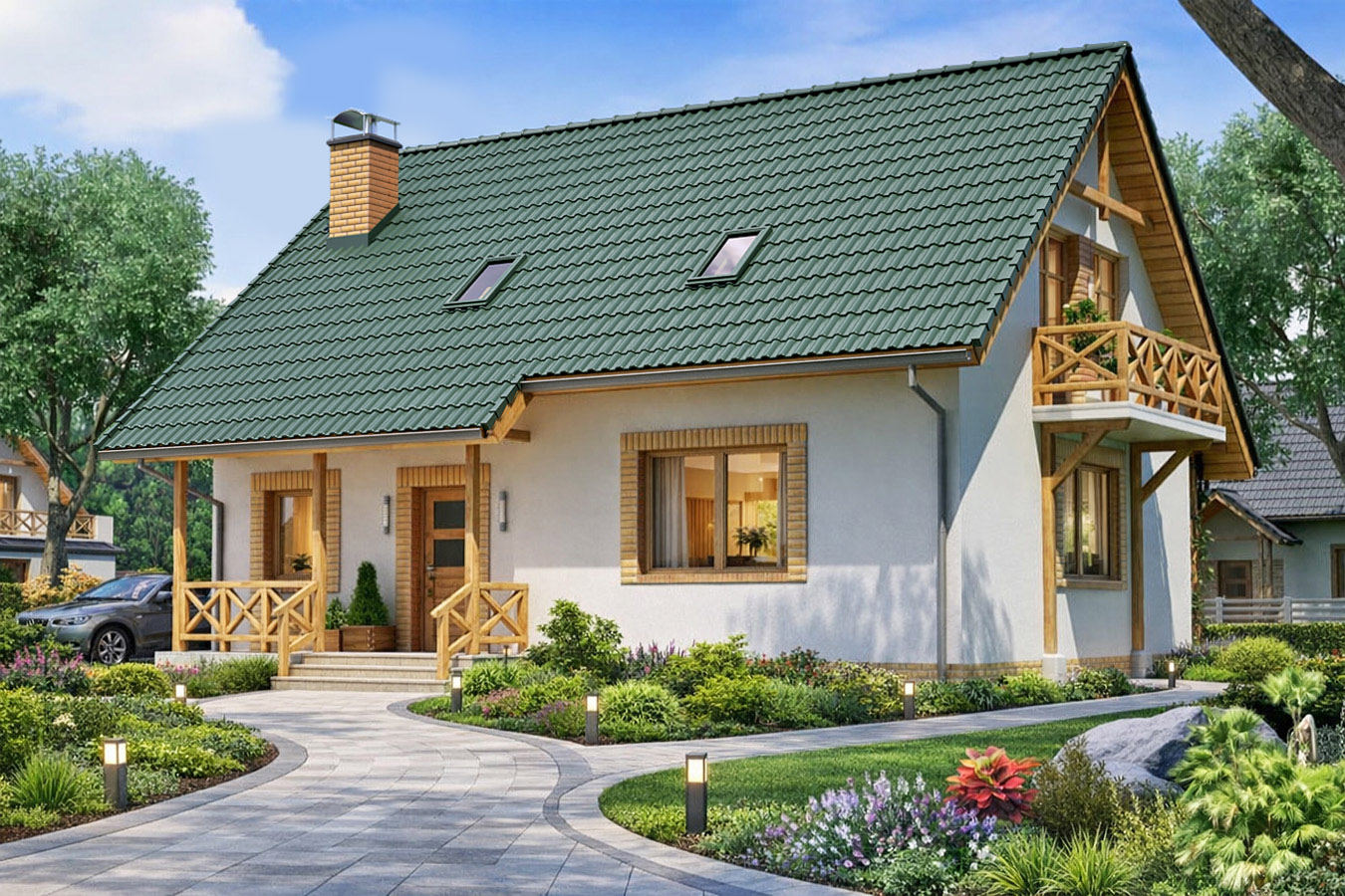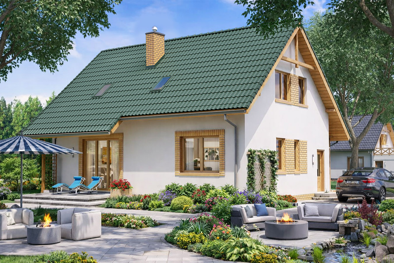 Powierzchnia dachu 166.60m2 (bez garażu), 204.60m2 (z garażem)