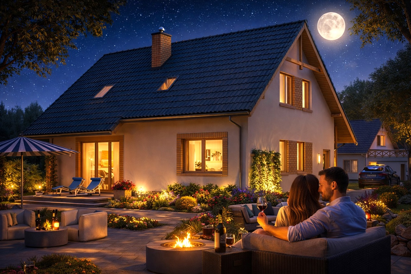Zawiera wszystkie instalacje wewnętrzne: centralnego ogrzewania z kotłem na paliwo stałe lub na gaz ziemny, wod.- kan, c.w., gazową, elektryczną, solarną oraz odgromową.